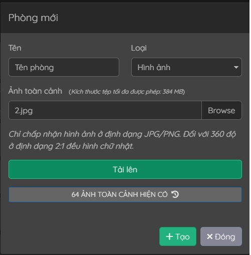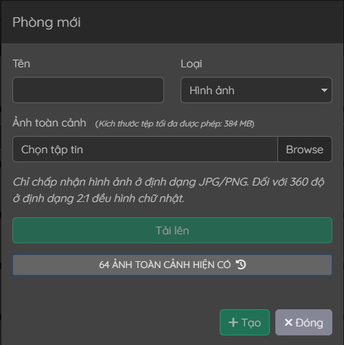 Một cửa sổ bật lên mới sẽ hiện ra với thông tin bạn cần điền để tạo phòng mới: